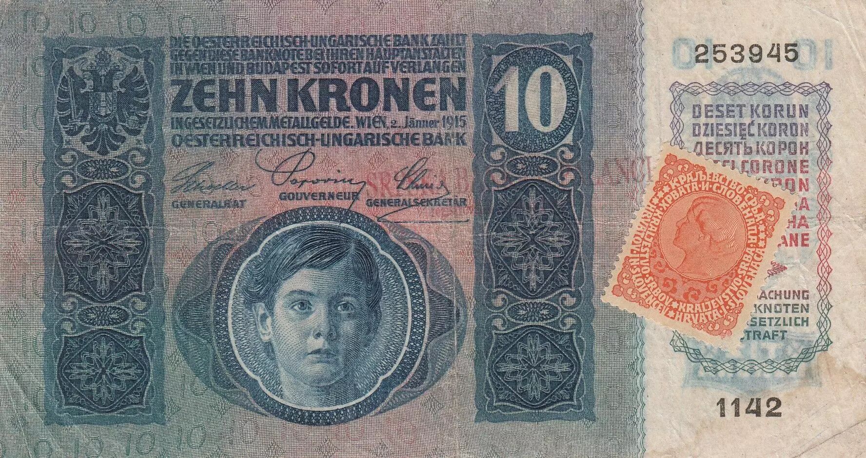 Billet Autriche 10 Kronen 1915 - Surcharge timbre postal
