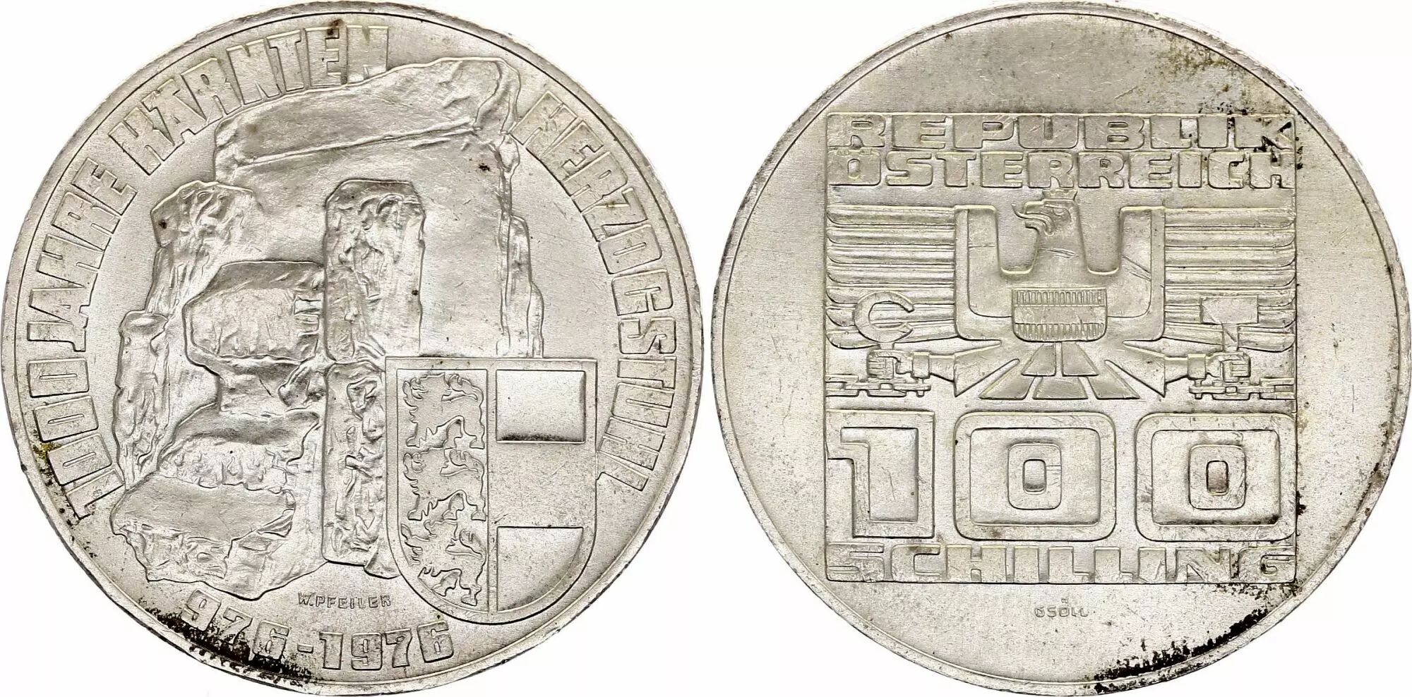 Pièce Autriche 100 schilling, 1000 e Anniversaire de la Carinthie - 1976