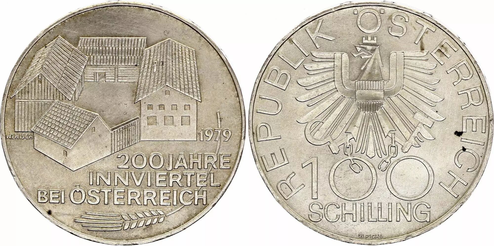 Pièce Autriche 100 schilling, 200 e Anniversaire de Inn - 1979