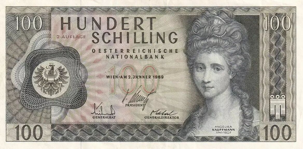 Accueil > Archivage > archivage-Billets du Monde > Autriche 100 Schilling - Angelika Kauffmann - Série CC - 1969 - P.145