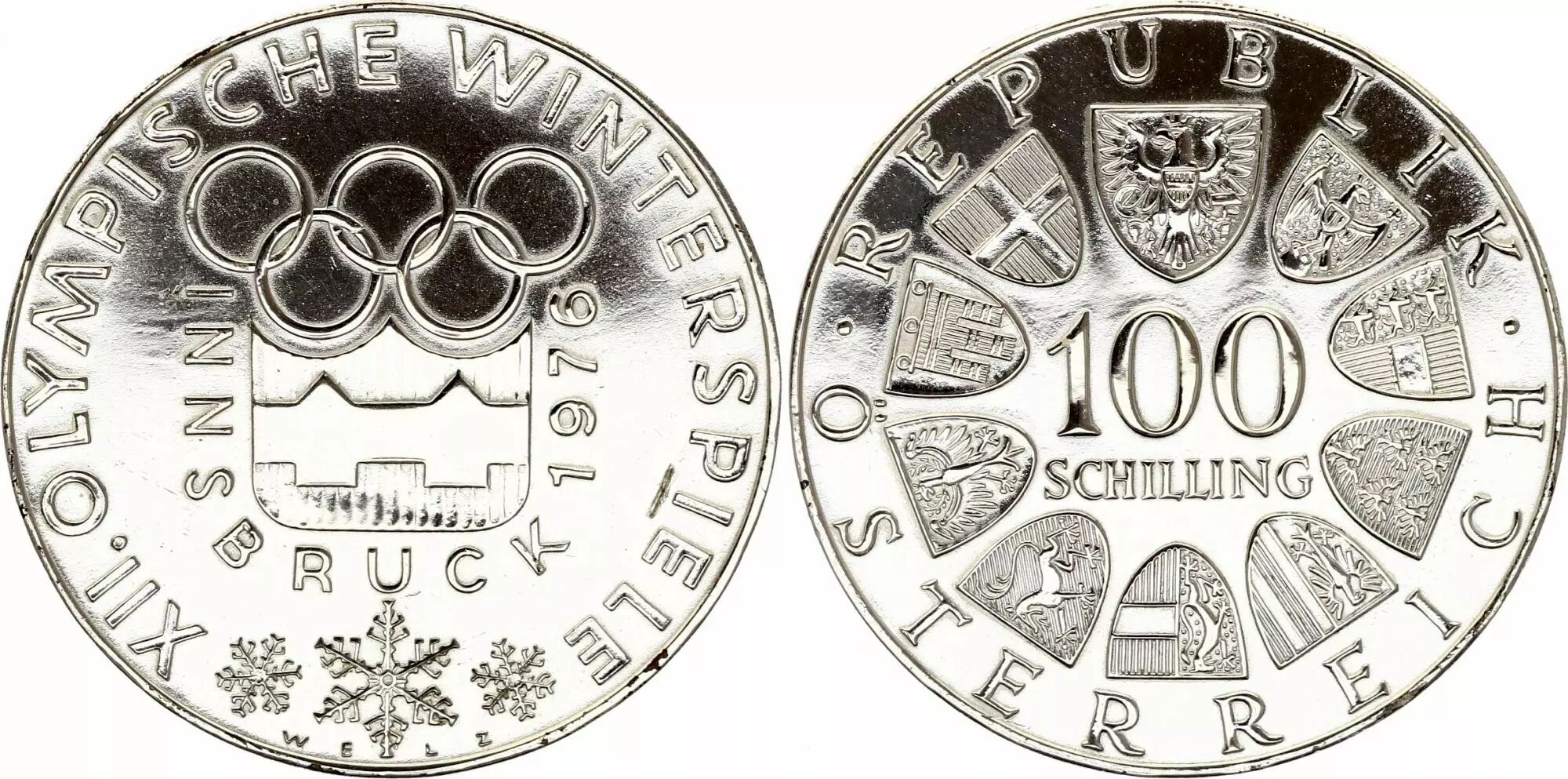 Pièce Autriche 100 shilling, Jeux olympiques d'hiver - 1976 BU