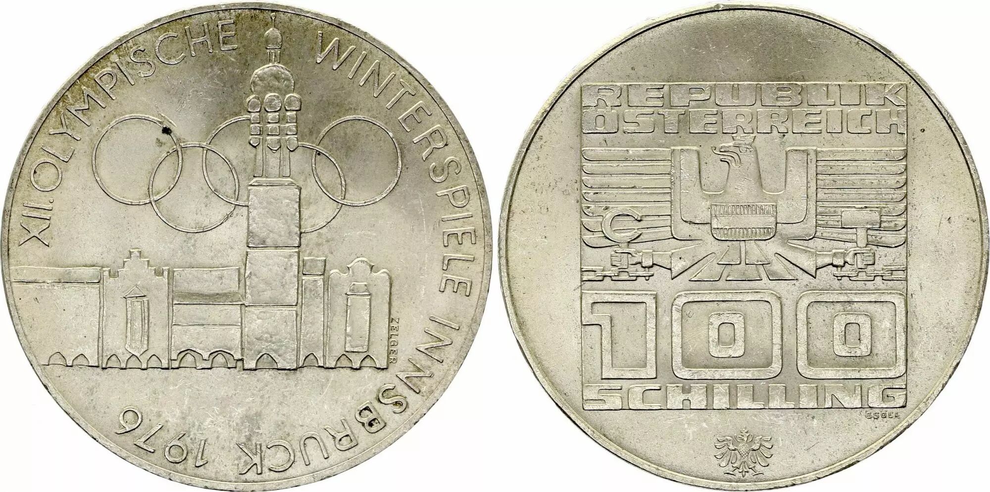 Pièce Autriche 100 shilling, JO d'hiver - 1976