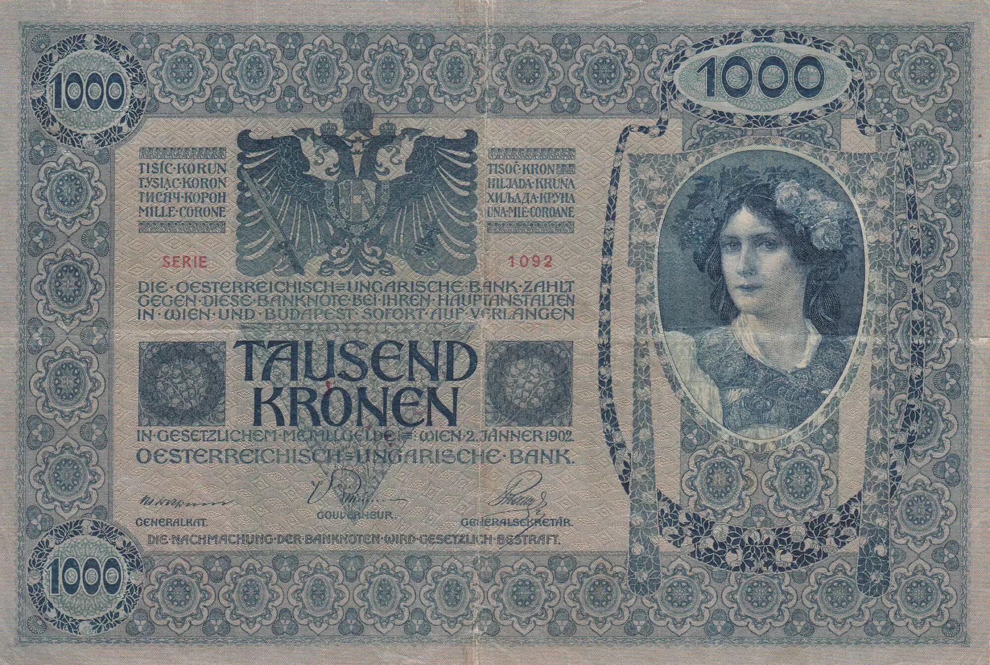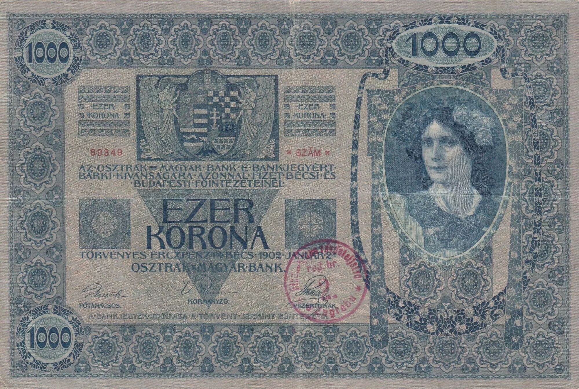 Billet Autriche 1000 Kronen 1902 - Surcharge tampon rouge
