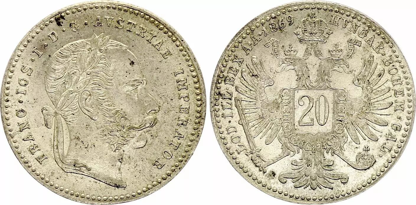 Pièce Autriche 20 Kreuzer, François joseph I - 1869