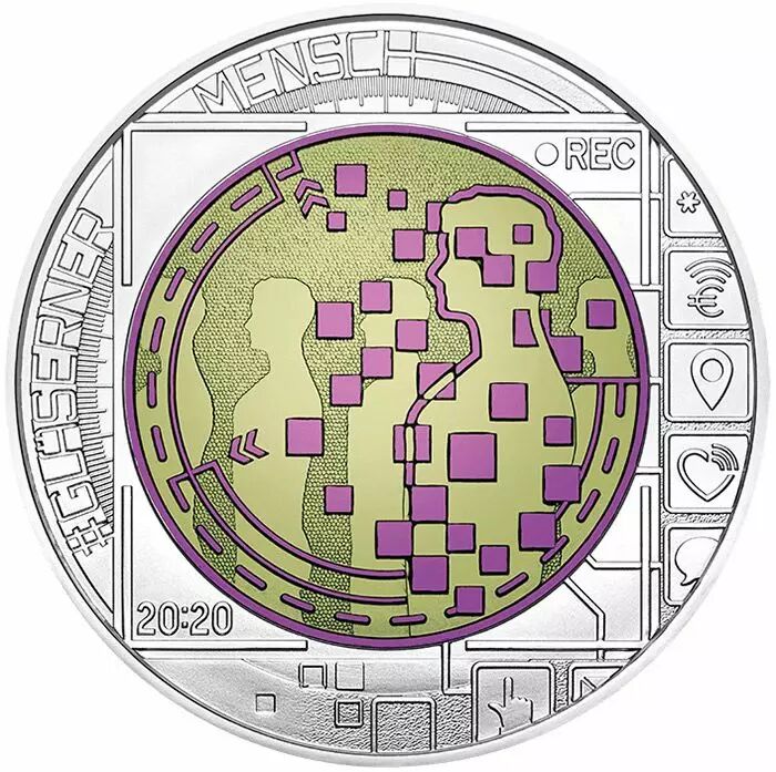 Dans son noyau de niobium l'avers de Big Data comporte un œil humain qui représente la surveillance d'une part et la méthode biométrique de reconnaissance de l'iris d'autre part tandis que l'anneau extérieur argenté est conçu comme un objectif de caméra. Le revers de la pièce montre des personnes sous surveillance. Au premier plan du noyau de niobium l'une des nombreuses silhouettes humaines est parsemée de carrés qui symbolisent les données personnelles recueillies sur cette personne.