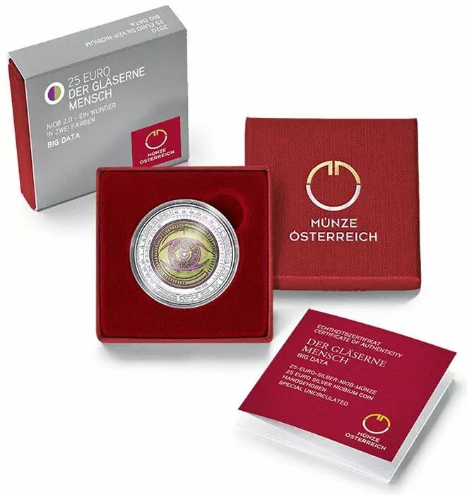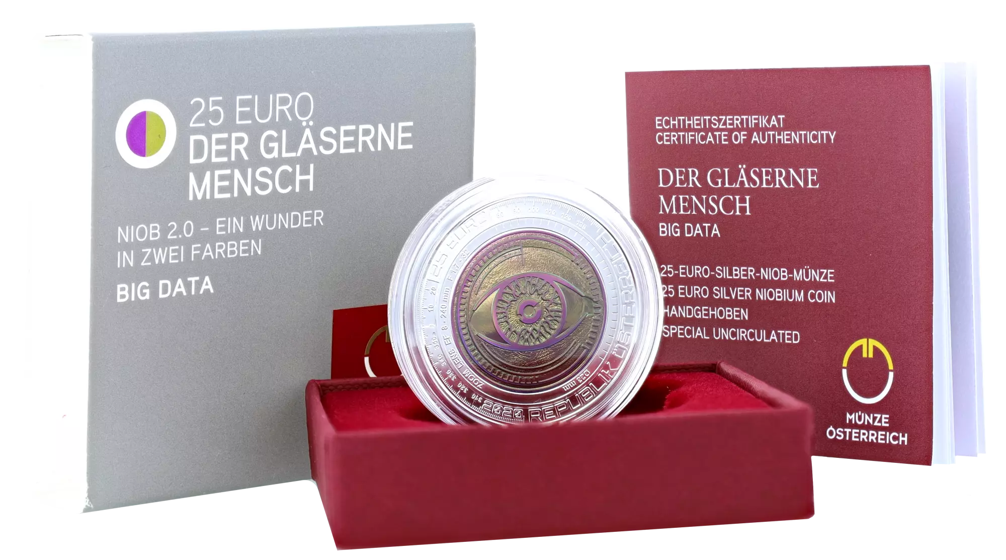 Innovation mondiale lors de leur lancement il y a près de dix ans les pièces autrichiennes de 25 euros en argent et niobium combinent encore design numismatique technologie et beauté esthétique de pointe.