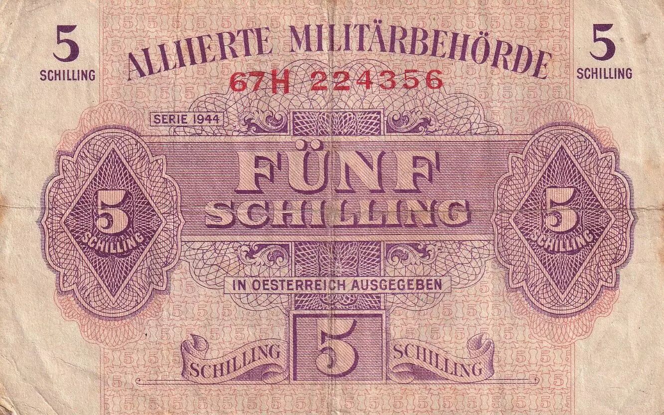 Accueil > Archivage > Autriche 5 Schilling - Autorités militaires alliées - 1944 - Série 67H - P.105