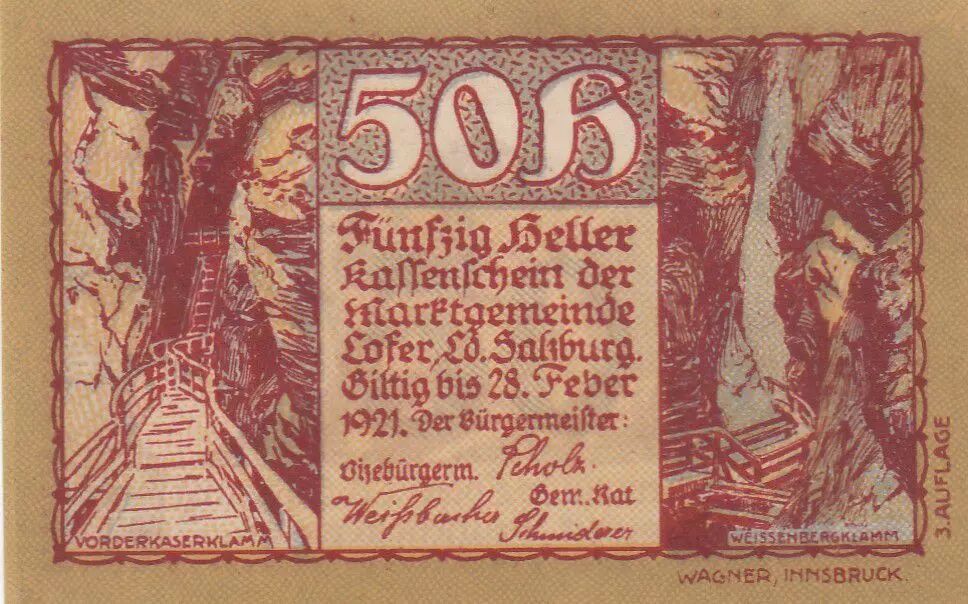 Billet Autriche 50 Heller 1921 - Montagne - Ville de Lofer