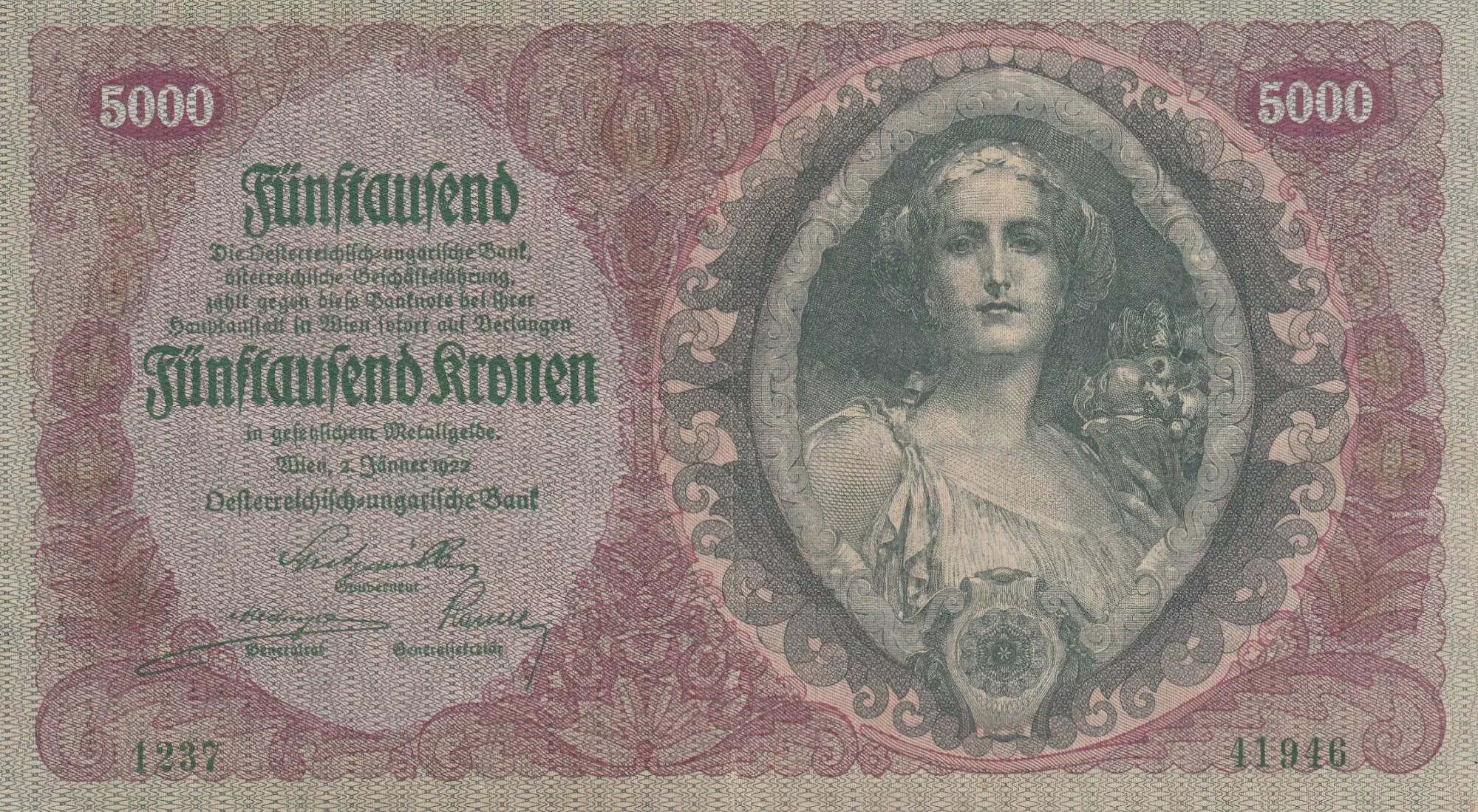 Accueil > Archivage > archivage-Billets du Monde > Autriche 5000 Kronen - Jeune Femme - 1922 - P.79