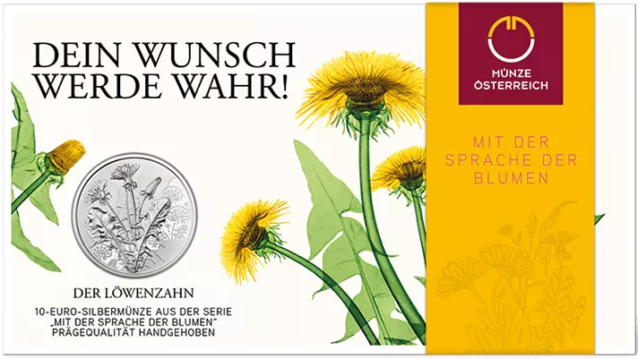 Accueil > Archivage > archivage-Archivage > Autriche AUTRICHE 2022 - Le Langage des Fleurs - Le Pissenlit - 10 Euros Argent (BU)