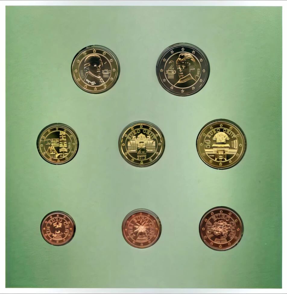 Le coffret contient l'ensemble des coupures en euros autrichiennes en qualité BU, allant de 1 centime à 2 euros. Chaque pièce présente les motifs nationaux autrichiens propres à chaque valeur faciale. Les pièces de 1, 2 et 5 centimes représentent des fleurs alpines, symbolisant le lien avec la nature et l'environnement. La pièce de 10 centimes met en scène la cathédrale Saint-Étienne de Vienne, un emblème architectural du pays. Les pièces de 20 centimes arborent le Belvédère, un autre monument viennois important sur le plan culturel et historique. La pièce de 50 centimes présente le bâtiment de la Sécession viennoise, représentant la naissance de l'Art nouveau en Autriche. Enfin, les pièces de 1 et 2 euros affichent respectivement le portrait de Wolfgang Amadeus Mozart et celui de Bertha von Suttner, prix Nobel de la paix, symbolisant l'héritage culturel et l'engagement pour la paix du pays.