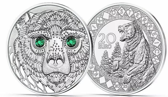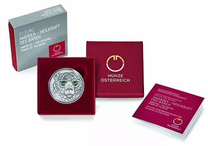 Eyes of the World est une série de cinq pièces de monnaie en argent chacune représentant un animal ayant un regard caractéristique qui l'a inscrit dans les mythes des anciennes cultures. Les yeux des cinq animaux présentés dans la série sont représentés par une cristal Swarovski® ayant une nuance particulière ce qui renforce leur regard. Le pouvoir guérisseur de l'Ours est la cinquième et dernière pièce de la série après le Hibou le Serpent le Tigre et l'éléphant.