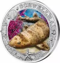 A l’occasion du lancement de sa nouvelle collection sur les animaux des fonds marins dont nous vous présentons la seconde pièce, la Monnaie d’Autriche propose un album collector, qui permettra de rassembler l’ensemble des pièces, ainsi qu’une torche UV permettant de découvrir les effets étonnants des pièces. Après la pieuvre aux anneaux bleus, c'est le Requin Holbiche ventrue qui est présent sur la seconde pièce.