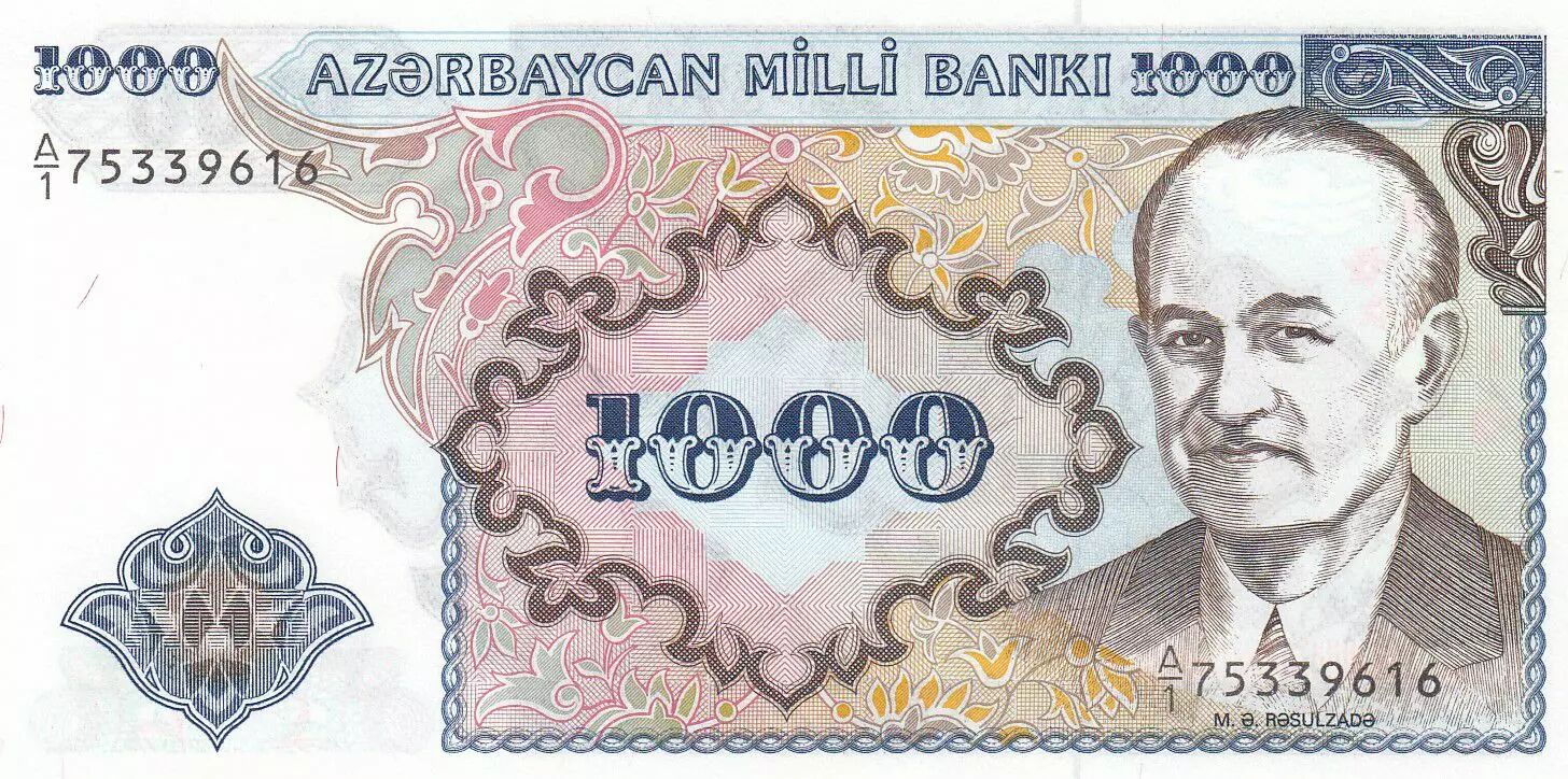 Banknote Azerbaidjan 1000 Manat M.E. Resulzado - 1993 - P.20a - UNC - Serial A.1