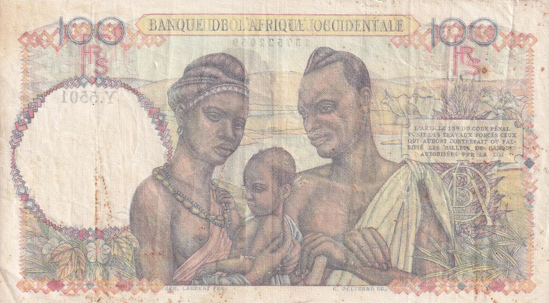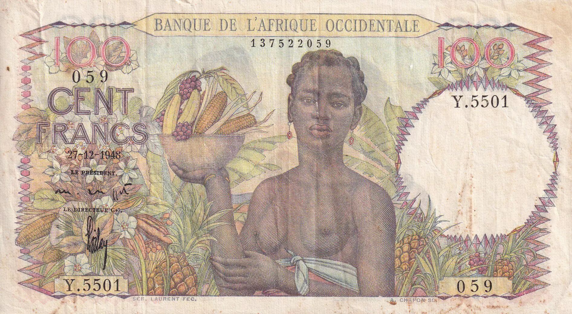 Accueil > Archivage > B A O 100 Francs - Africaine, ananas - Famille - 27-12-1948 - Série Y.5501 - TB+ - P.40