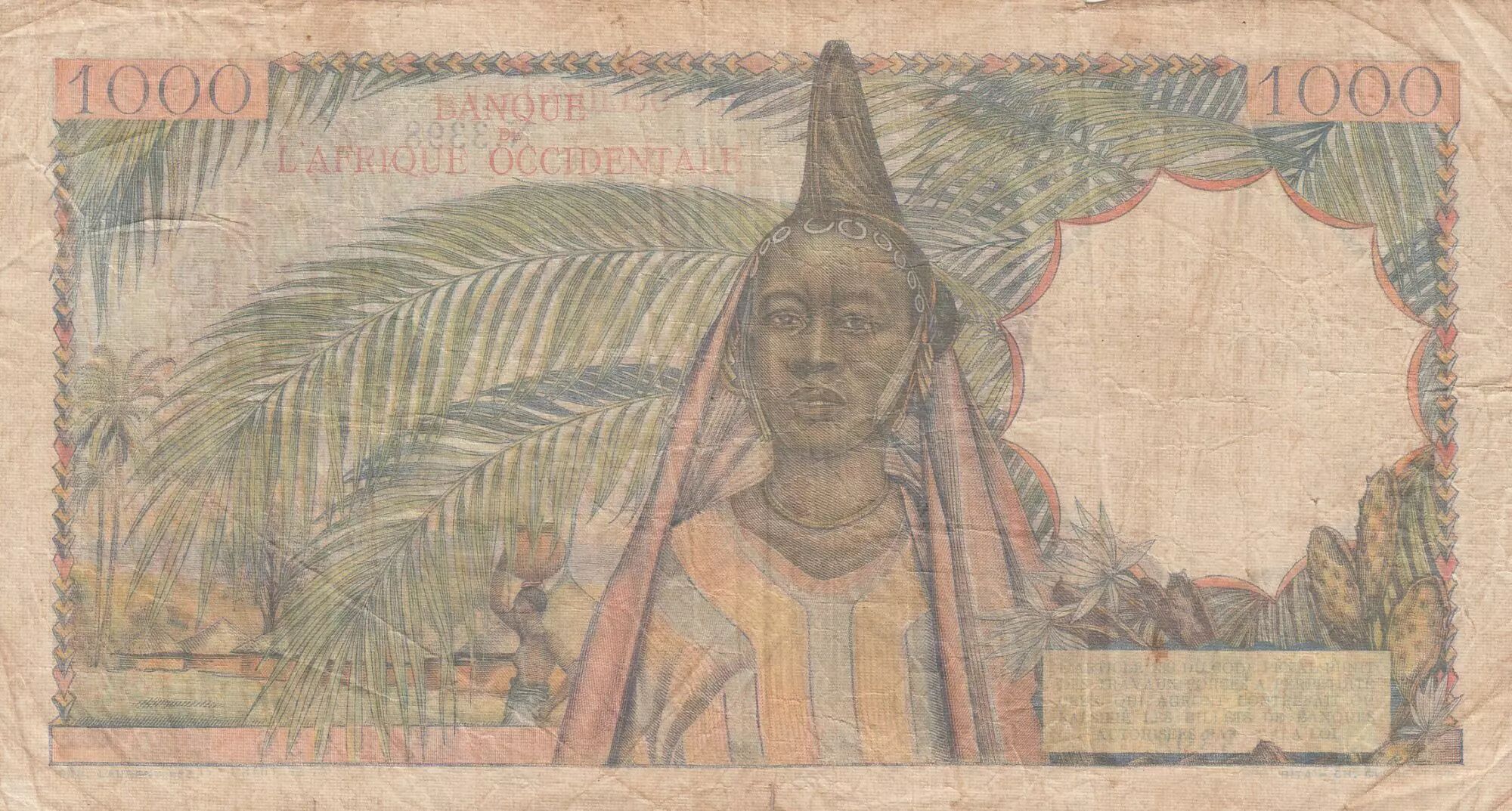 Accueil > Billets du Monde > Billets d'Afrique > Banque de l'Afrique Occidentale > B A O 1000 Francs Femme, poteries - 21-11-1953 - TB + - P.42