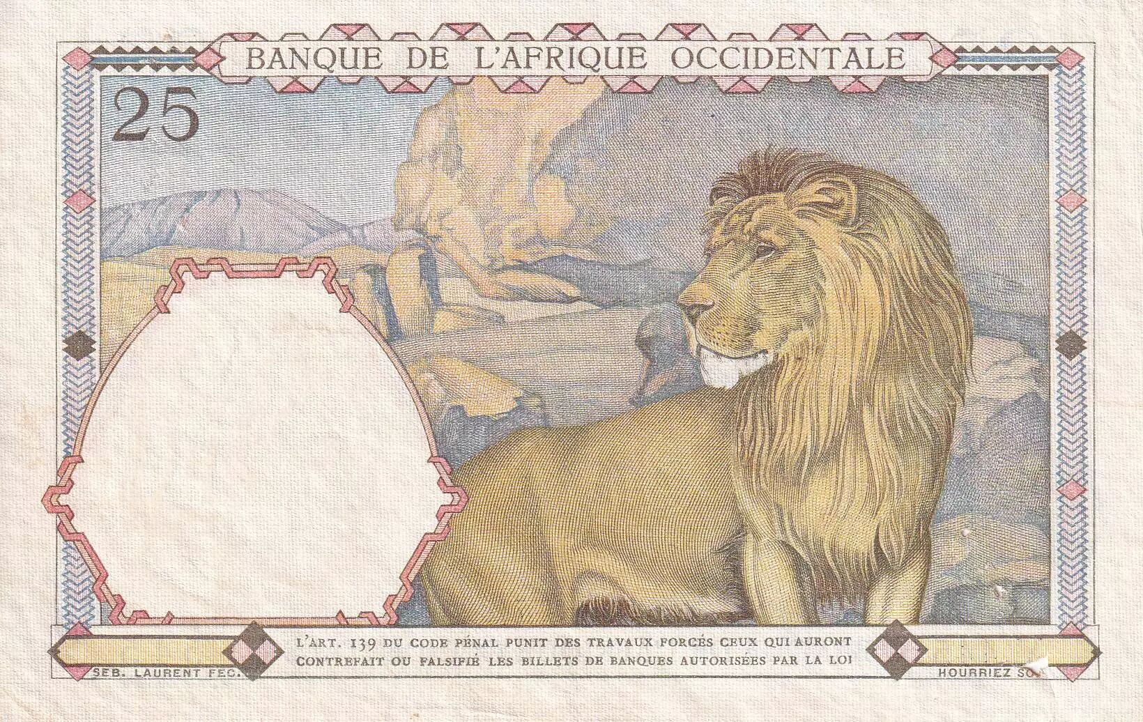 Accueil > Archivage > B A O 25 Francs - Homme et cheval, Lion - Chiffres bleus - 1937 - Série V.445 - TTB+ - P.22