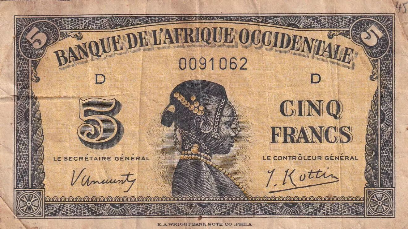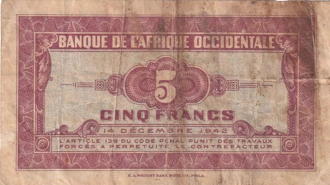 Billet B A O 5 Francs - Africaine - 1942 - Lettre D