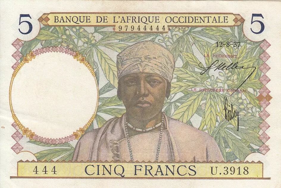 Billet B A O 5 Francs - Caféier - Tisseran - 12-08-1937 - Série U.3918