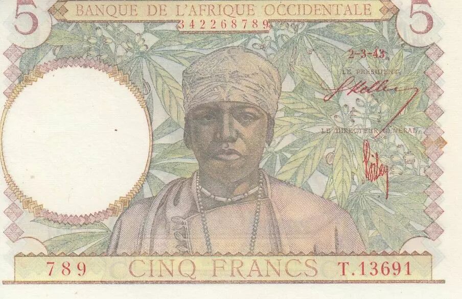 Accueil > Archivage > archivage-Billets du Monde > B A O 5 Francs - Caféier - Tisseran - Chiffres rouges - 1943 - Série T.13691