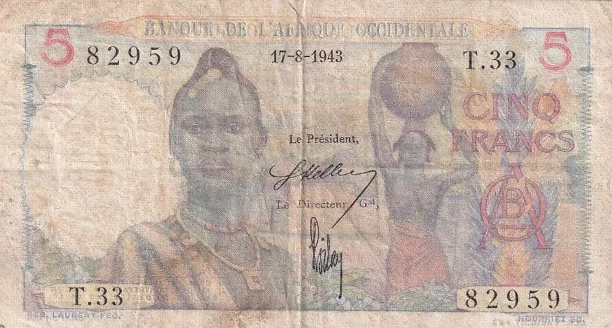 Billet B A O 5 Francs - Femmes, pêcheurs - 17-08-1943 - Série T.33