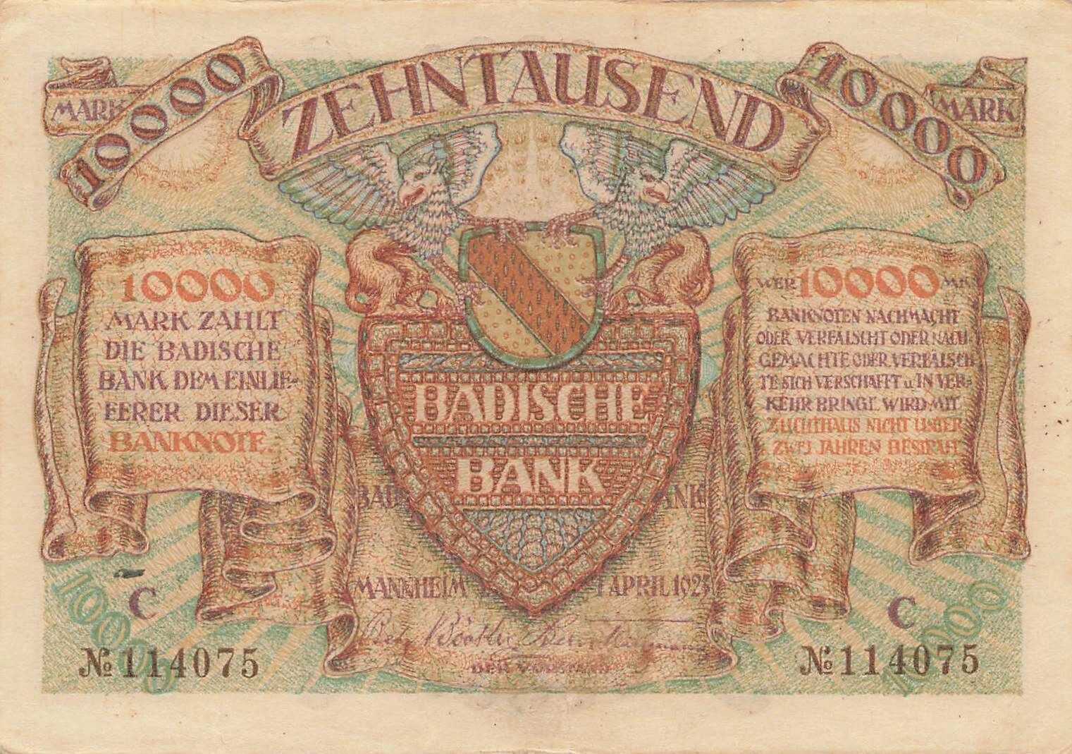 Billet Baden 10000 Mark - Badische Bank - 01-04-1923 - P.S910