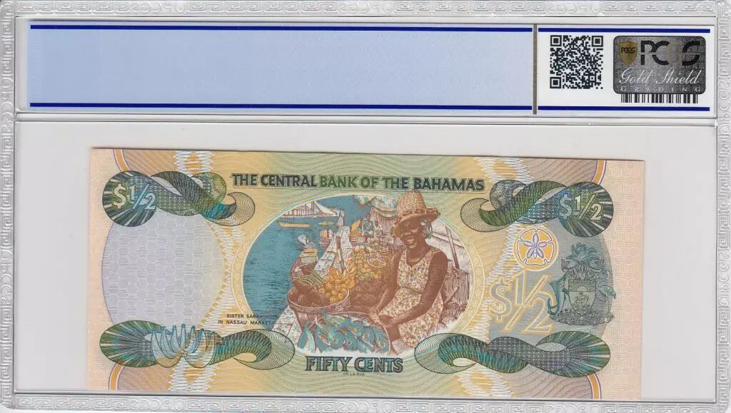 Accueil > Archivage > archivage-Billets du Monde > Bahamas 0.5 Dollar Elizabeth II - Marché - 2001 - PCGS 65 OPQ