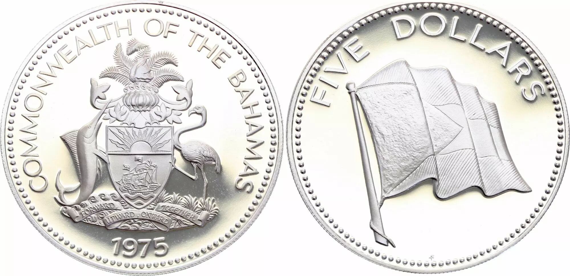 Pièce Bahamas 5 Dollars - Drapeau - 1975 - Argent - Frappe BE