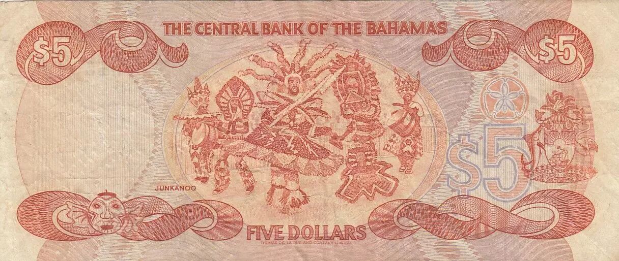 Billet Bahamas 5 Dollars - Elisabeth II - Danseurs traditionnels - 1984