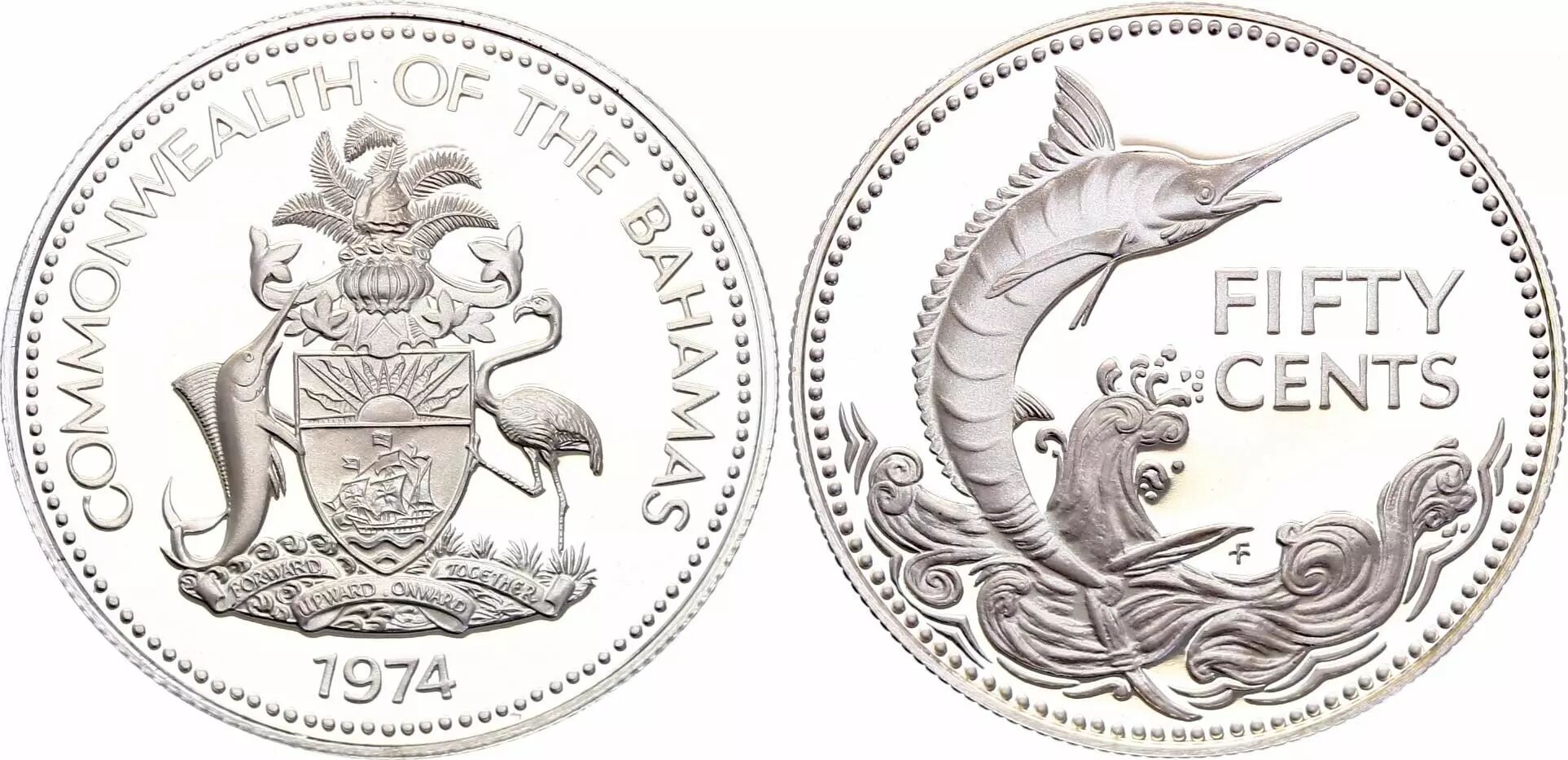 Accueil > Archivage > Bahamas 50 Cents - Marlin Bleu - 1974 - Argent - Frappe BE