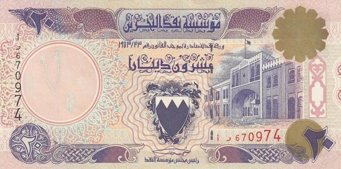 Banknote Bahrain 20 Dinars - Bab al-Bahrain - Num 670974 - 1998 - P.22