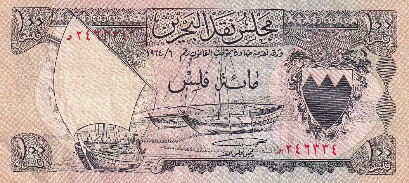 Accueil > Archivage > Bahreïn 100 Fils - Bateaux - Palmiers - ND (1964) - P.1