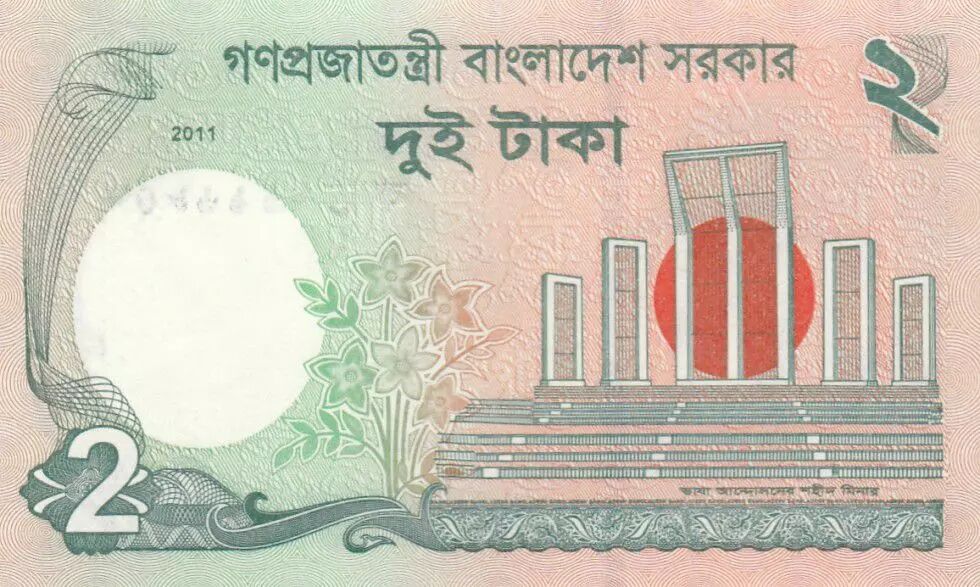 Billet Bangladesh 2 Taka M. Rahman - Monument - 2011