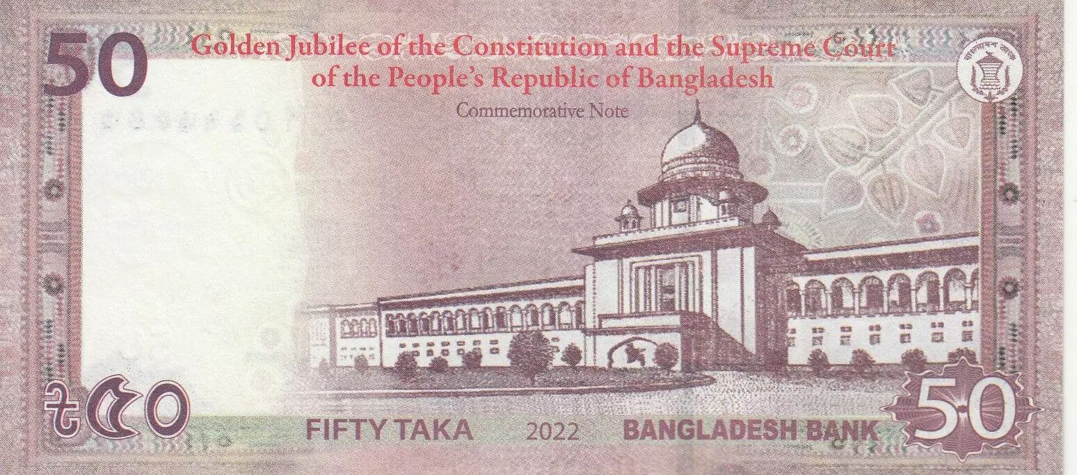Billet Bangladesh 50 Taka - Jubilé d'or de la Constitution et de la Cour suprême - 2022