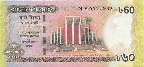 Accueil > Billets du Monde > Billets d'Asie > Bangladesh > Bangladesh 60 Taka Monument - 1952-2012 language mouvement