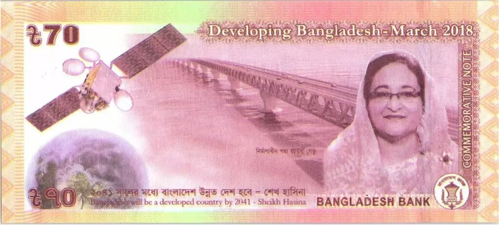 Billet Bangladesh 70 Taka 2017 - Muhibur Rahman, Sheikh Hassina - 2017