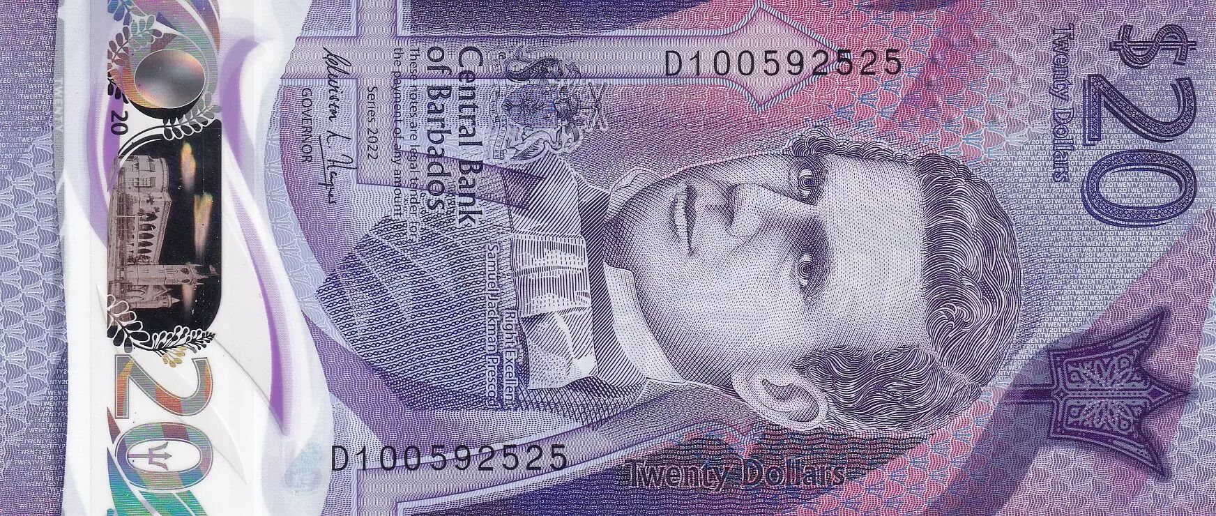 Home > > Barbados 20 Dollars - Samuel J. Prescod - 2022 - Serial D - P.NEW