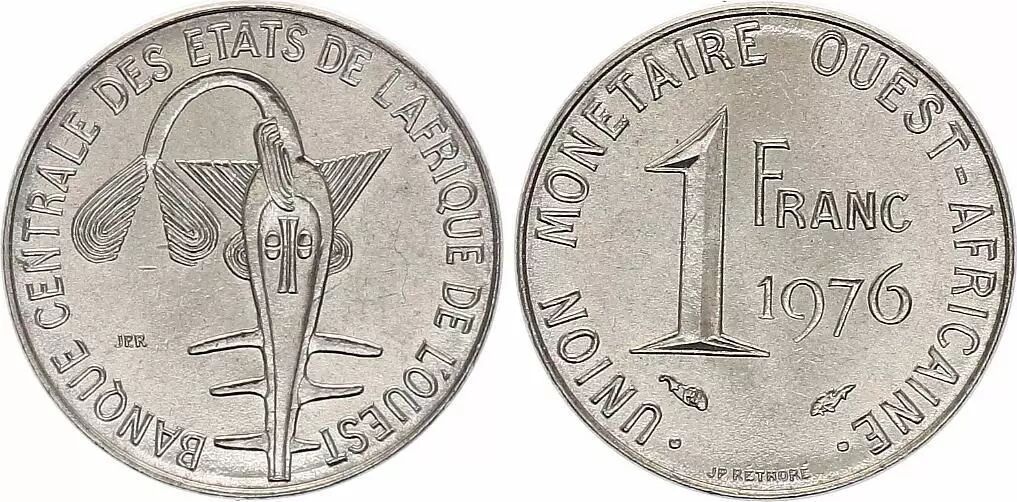 Pièce BCEAO 1 Franc - Union Africaine - Poids d'or des Ashantis - 1976