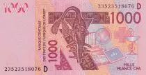 Billet BCEAO 1000 Francs - Masque - Chameaux - 2023 - Lettre D Mali
