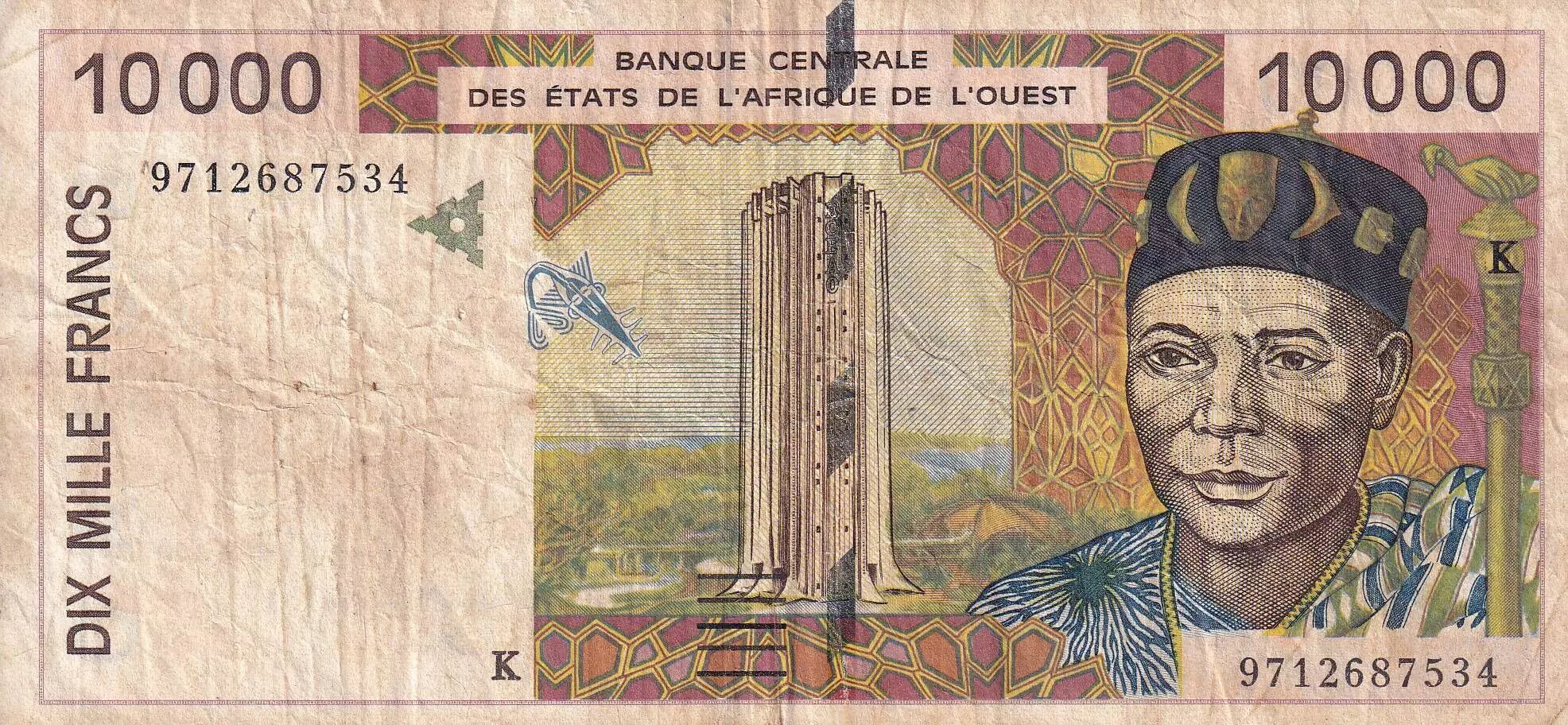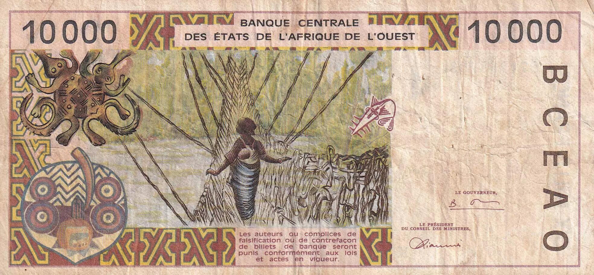 Billet BCEAO 10000 Francs - Chef africain - Pont de liane - 1996 - K Sénégal - TB - P.714Ke