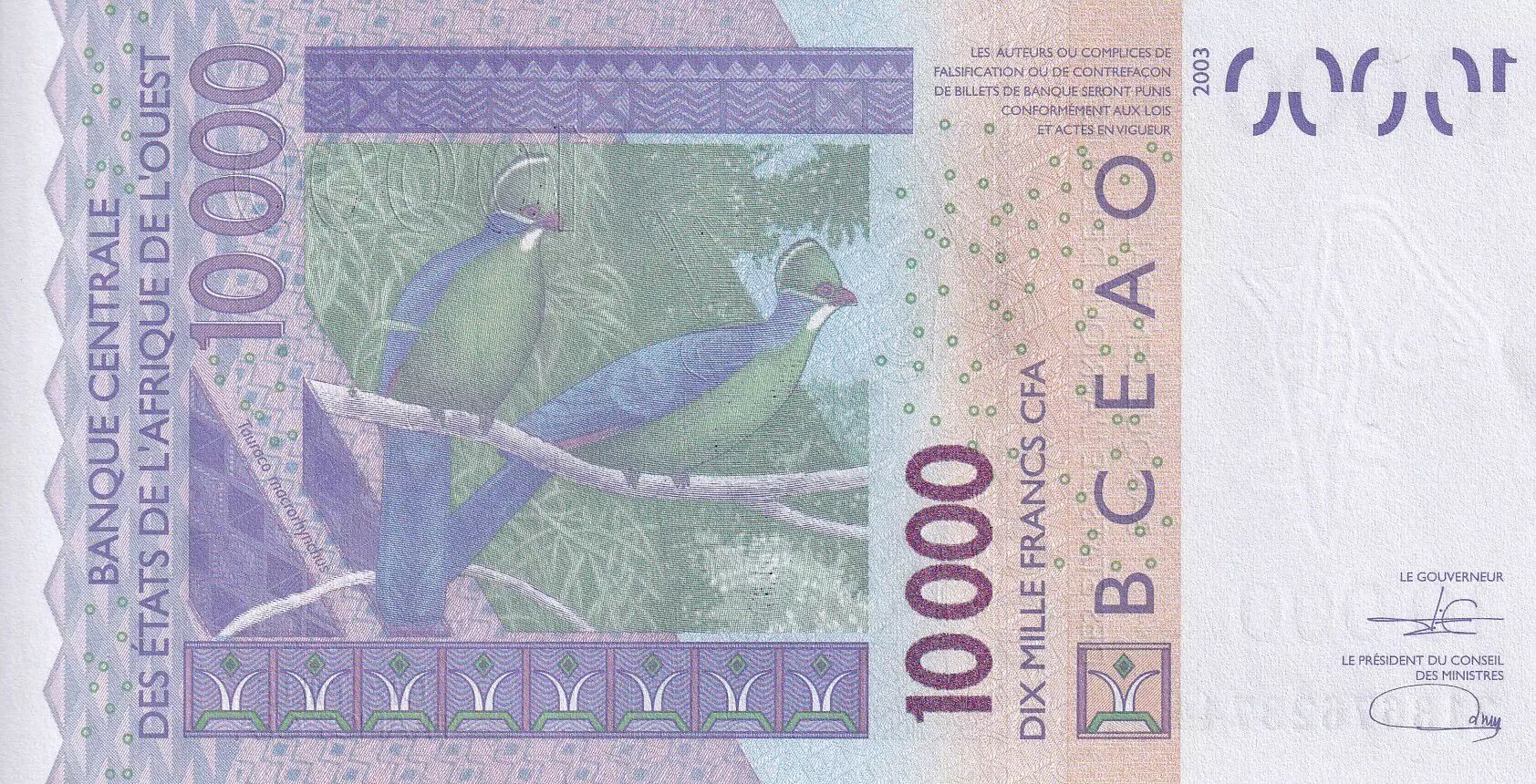 Accueil > Billets du Monde > Billets d'Afrique > Etats de l'Afrique de l'Ouest > BCEAO 10000 Francs - Masque - Oiseaux - 2021 - Lettre A ( Côte d'Ivoire) - P.NEW
