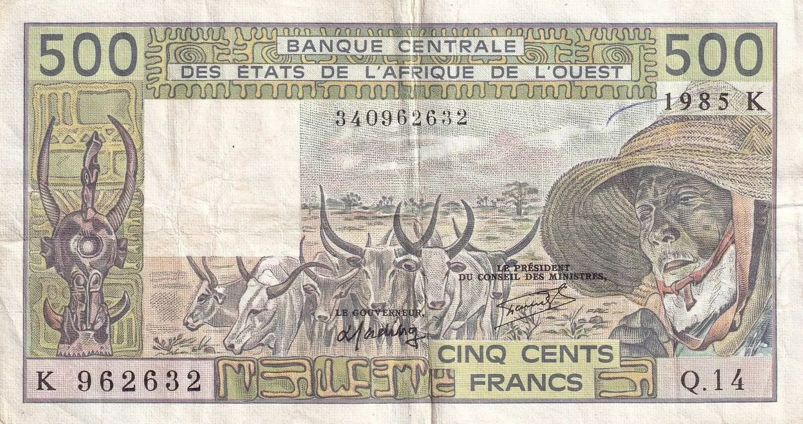 Billet BCEAO 500 Francs - Vieil homme et zébus - Lettre K (Sénégal) 1985 - Série Q.14 - P.706Kh