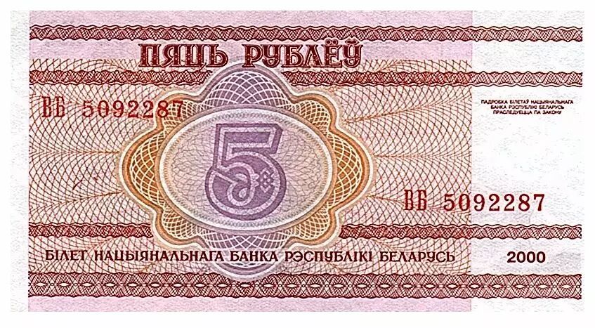 Banknote Belarus 5 Roubles Minsk lower city - 2000