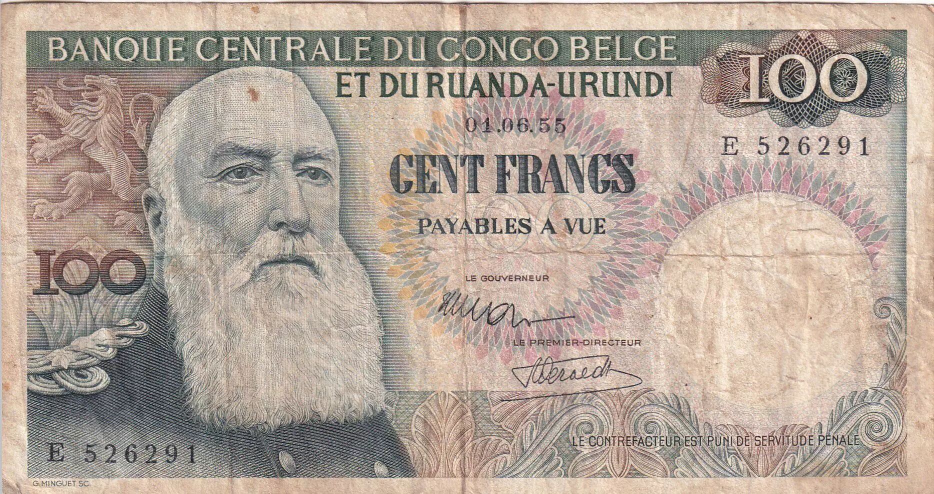 Home > > Belgian Congo 100 Francs - Leopold II - 01-06-1955 - Serial E - P.33a