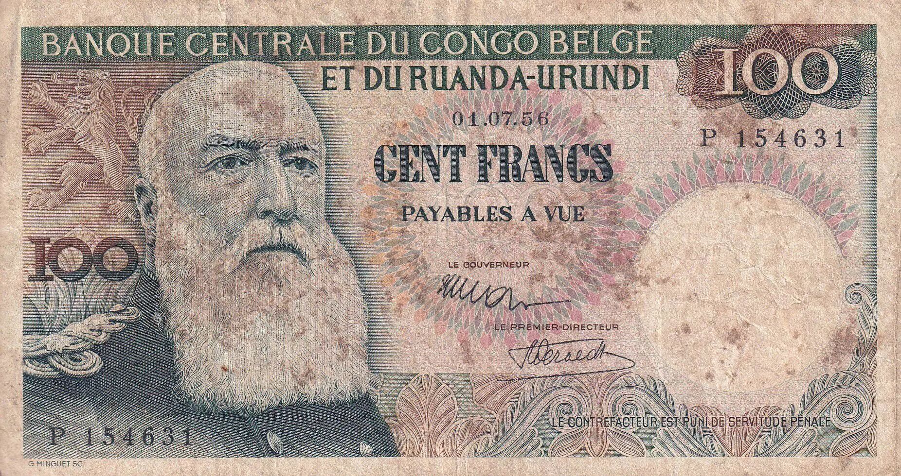 Home > > Belgian Congo 100 Francs - Leopold II - 01-07-1956 - Serial P - P.33a
