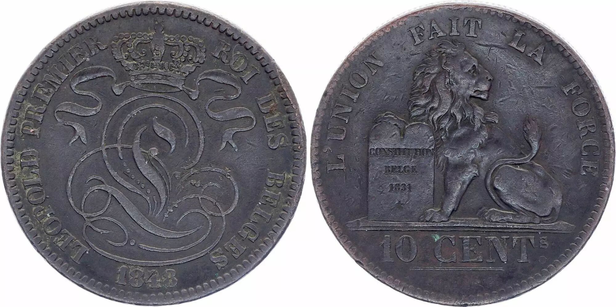 Pièce Belgique 10 Centimes Léopold I - Lion - 1848