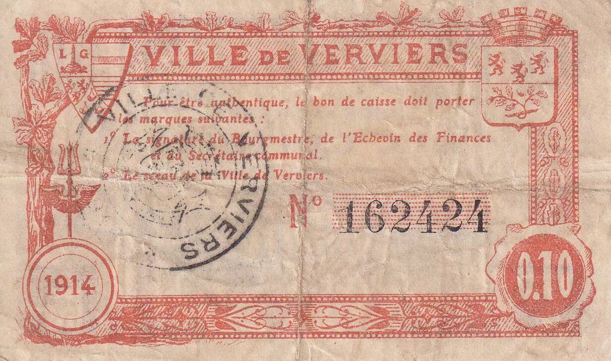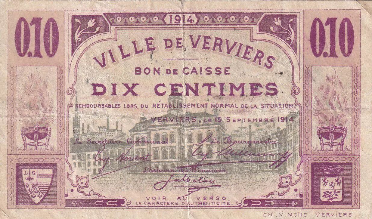 Accueil > Archivage > Belgique 10 Centimes - Ville de Verviers - Bon de Caisse - 1914
