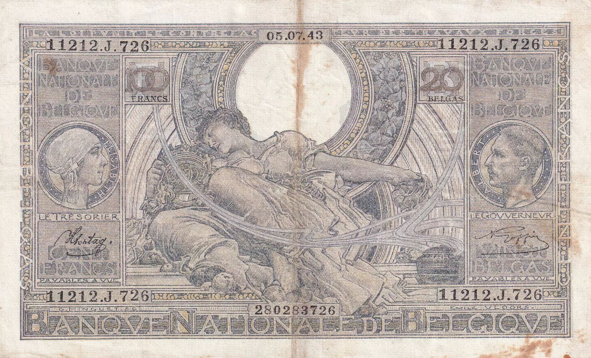 Accueil > Archivage > Belgique 100 Francs - 1943 - Lettre J - P.112