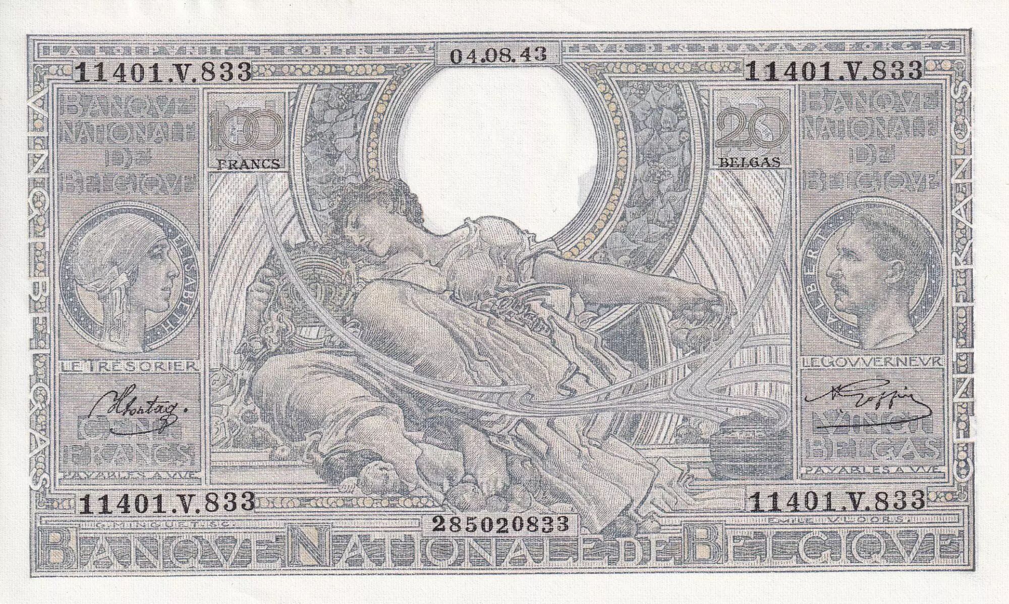 Accueil > Archivage > Belgique 100 Francs - 1943 - Lettre V - P.112