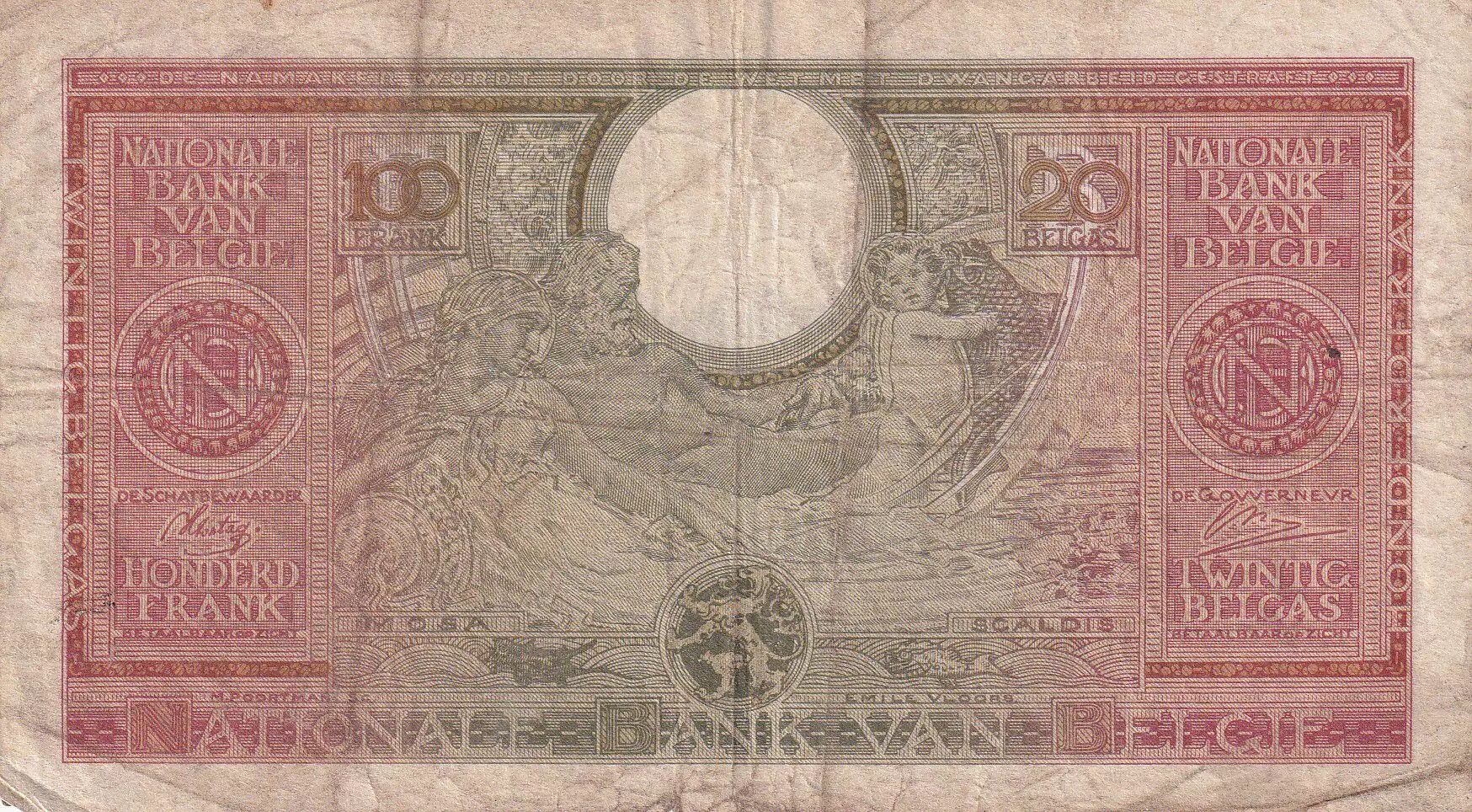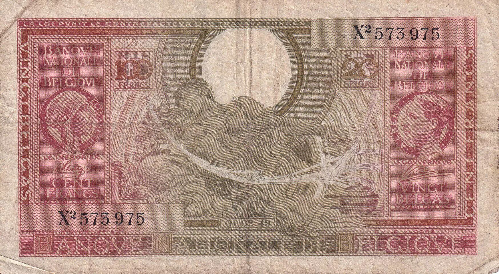 Accueil > Archivage > Belgique 100 Francs - 1943 - Série X.2 - P.132a